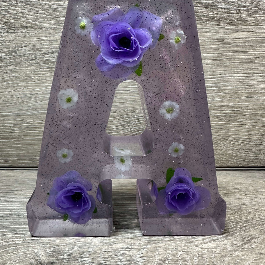 These Letters are custom made to include Flowers or other items; they can also be made with other memento items.
